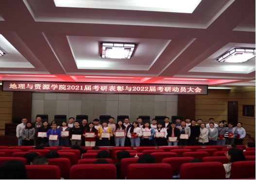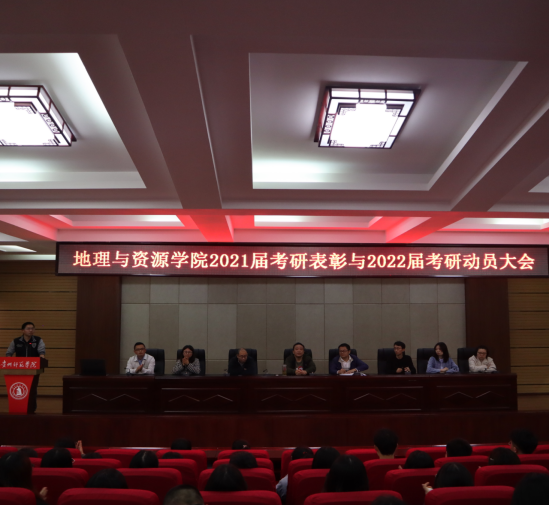 4月27日,为树立典型,激励先进,总结经验,发扬成绩,调动考研热情,促进学院人才培养高质量发展,beat365英国官网网站2021届考研总结表彰暨2022届考研动员大会在文韬苑道德讲堂隆重举行。学院党总支书记吴亚平教授、副院长罗光杰博士、邓家彬博士、学业导师代表徐秀月博士、自然地理系系主任张伟博士、资源环境系系主任刘蕊博士、地理信息科学系系主任周光红博士、学院党政办公室况江老师、2017级辅导员杨鸿雁博士、学院兼职班主任十余位博士以及各年级学生代表二百余人参加会议。会议由学院党政办公室主任宗积章主持。