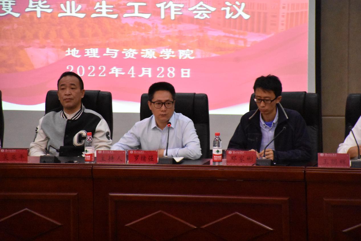 2022年4月29日,beat365英国官网网站在文韬院道德讲堂召开2022届全体毕业生会议。学院党委书记吴亚平、院长兼党委副书记罗绪强、副院长兼贵州山地研究院院长罗光杰、副院长邓家彬,系主任代表张伟,教学科研科科长王鹏辉,学生党支部书记张其芳、林丽以及2018级辅导员韩默然出席了本次会议,beat365英国官网网站2022届全体毕业生参加了会议。会议由罗绪强主持。