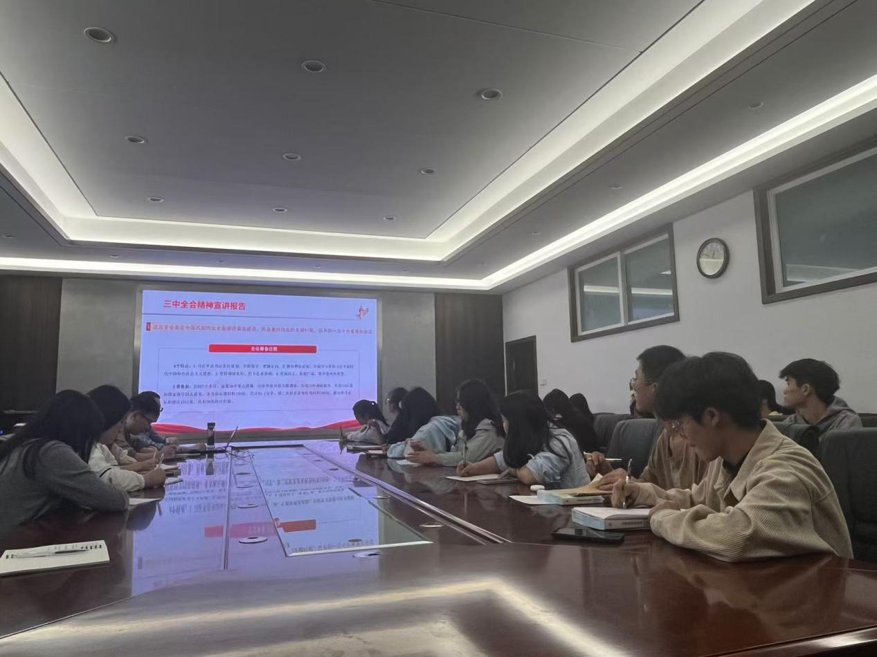 2024年10月18日中午,beat365英国官网网站党委书记杜彪,在beat365英国官网网站会议室,为师生宣讲党的二十届三中全会精神。