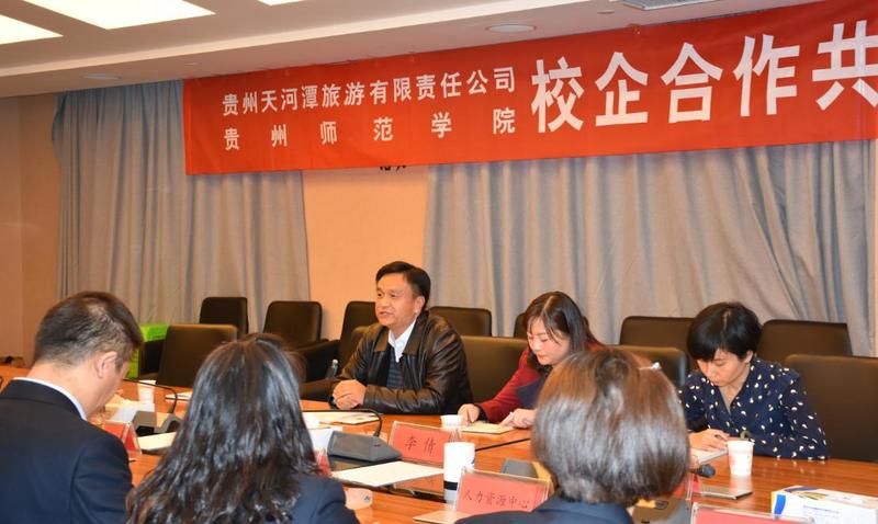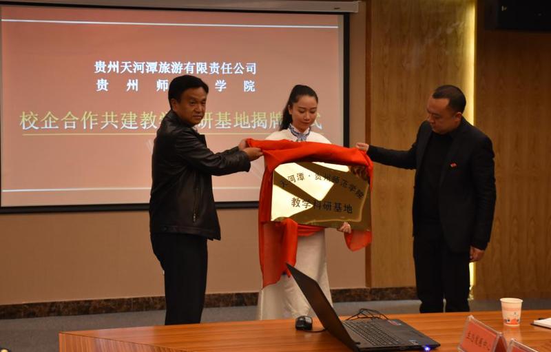 11月2日,beat365英国官网网站地理与旅游学院院长李乐京教授、学院李倩副教授、罗清云老师、费雄老师一行四人赴天河潭景区参加“beat365英国官网网站与贵州天河潭旅游有限责任公司共建校企合作基地”揭牌仪式,并洽谈校企合作相关事宜。天河潭旅游有限责任公司的王兼总经理、马骏驰副总经理、人事经理罗小静及其相关部门负责人出席了揭牌仪式。
