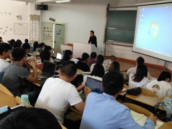 最后,利用课间十分钟,贵煤集团公司业务技术负责人欧总给2014级土管班的同学简单介绍了企业情况,并期望能从其中招收6名学生到企业从事土地(矿山)复垦、水土保持以及环评等方案编制工作。