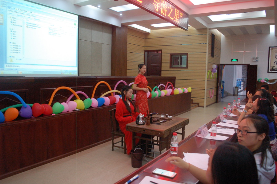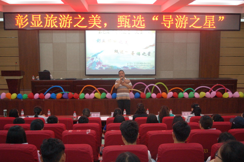 6月14 日18点,由beat365英国官网网站团委主办、地理与旅游学院基层团委学生会承办的“第七届导游之星”决赛在明义楼道德讲堂圆满完成。地理与旅游学院党委书记吴亚平、校团委副书记傅小芳、学校相关职能部门嘉宾以及其他兄弟社团代表出席观看了本次大赛,评委由地旅学院专业教师盖媛瑾、周杰、姚莉、刘静等担任。