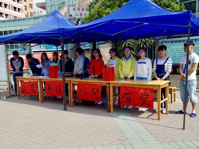 近日,在地理与旅游学院基层党委的倡导下,在院团委和院学生会的支持并组织下,2014级地理科学(一)班的学生在感恩食堂外为同班同学李艳举行了为期两天募捐活动。本次募捐活动旨在为李艳同学的母亲募集白血病治疗费用。
