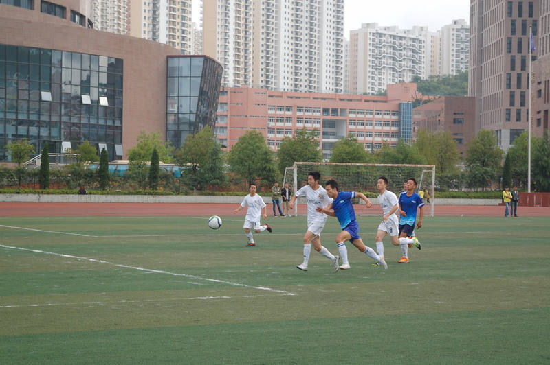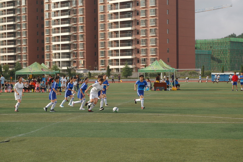 12日下午四时,在激昂的《运动员进行曲》下,校旗方队缓缓步入赛场,在体育学院副院长李延武致辞后,比赛正式进行。此次比赛是由男女混合对抗进行的,比赛前20分钟在女队之间展开较量,接下来40分钟则是双方男队的比拼。绿茵茵的赛场因奔驰的足球猛将变得热闹起来,奔跑中的队员,宛如犀利的雄鹰,死死盯住足球;又似乎是狂热的猎豹,不懈的追逐“猎物”;又仿佛是勇敢的战狼,不畏对手的进攻。无论是炙热的太阳,还是绵绵的细雨,都不能阻挡队员追逐足球的步伐,相反,矫健的身姿灵活自如的奔跑在赛场。