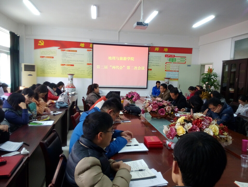 3月11日下午,地理与旅游学院工会第二届“两代会”第二次会议在宁静楼325会议室召开,学院领导和全体教职工50余人出席了本次会议。会议由院党委副书记吴亚平同志主持。会议第一项由院长李乐京同志代表学院作工作报告,对学院2015年工作进行了回顾与总结,并对2016年学院各项工作做了部署,指出2015年是学校本科教学合格评估年,学院坚持以人才培养为中心,圆满完成各项工作任务,推进了事业发展。过去的一年,学院积极主动完成学校安排的各项工作,所取得的成绩来之不易,这是365官网全体教职员工同舟共济、开拓奋进的结果。2016年学院要继续全面围绕提高人才培养质量这一中心工作,坚定不移地走内涵式发展道路,为教书育人、科学研究创造良好环境。要坚持育人为本,全面提高人才培养水平;坚持人才战略,努力破解人事改革难题;坚持科学管理,不断完善学院治理体系。会议第二项由学院工会主席俞进同志做2015年度工会工作报告,院工会秉承“党政所急、职工所需、工会所能”的理念,紧紧围绕学校的工作大局,切实履行“维护、建设、参与、教育”等职能;并对2016年工会工作从加强教职工队伍和工会自身建设、完善学院民主管理、做好教职工福利工作等三个方面提出了构思和设想。会议第三项由学院办公室任继英同志作了2015年学院公用经费财务开支报告。报告中详细介绍了2015年度在基本建设和服务支出及其他资金支出等总支出情况。第四项全体工会会员听取学院工会关于365官网“两代会”提案情况说明。其间,各位代表进行了热烈的讨论,最后举手表决通过了以上各项工作报告。