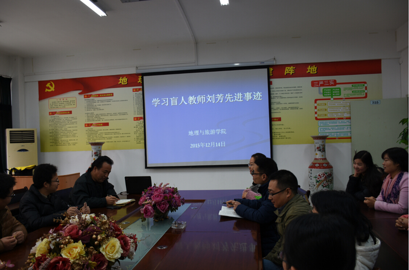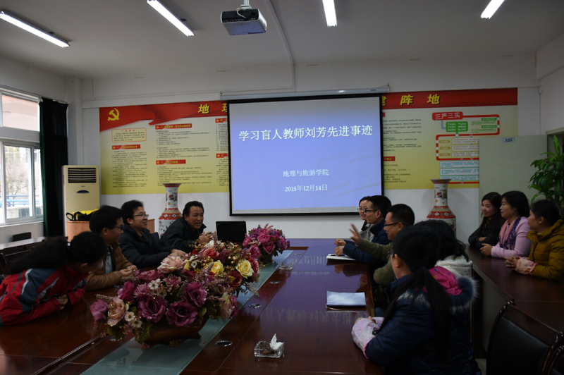 12月14日中午,地旅学院全体教职员工在365官网会议室开展学习盲人教师刘芳先进事迹活动,活动由副书记吴亚平主持。