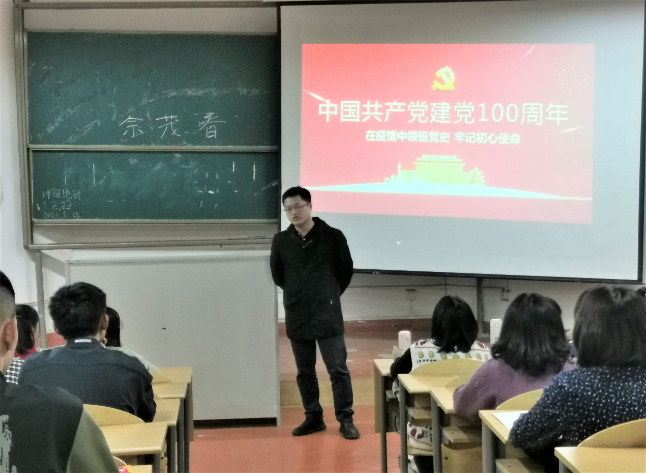 2021年3月28日,beat365英国官网网站学生党支部在宁静楼235教室开展了三月份的党日活动。本次活动主题为 ——“中国共产党建党100周年”在疫情中领悟党史,牢记初心使命。