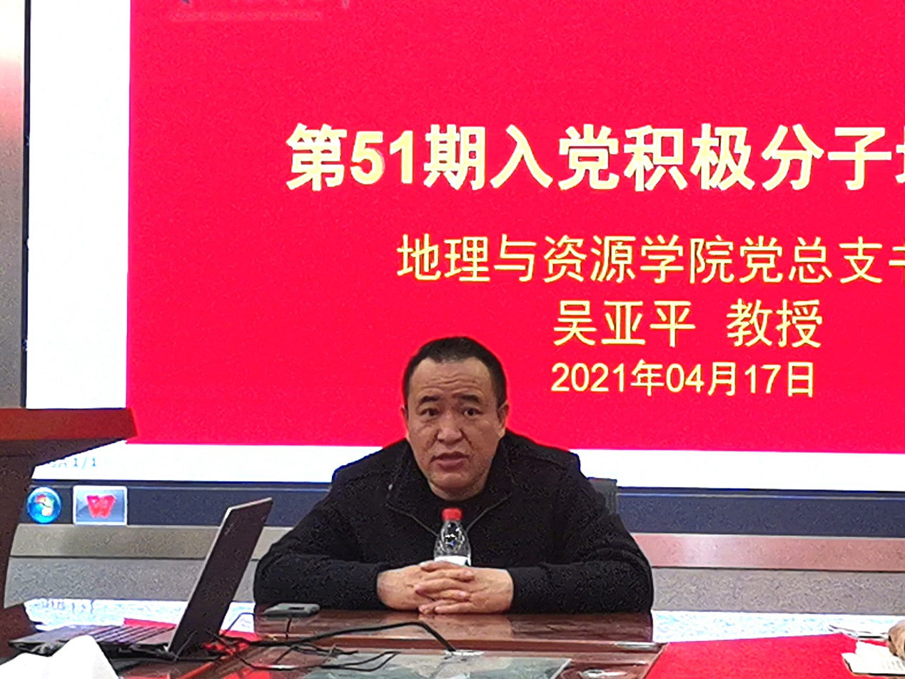 2021年4月17日上午9点,beat365英国官网网站第51期入党积极分子党课培训第二次专题讲座——“中国共产党的性质和指导思想”由党总支书记吴亚平老师主讲。