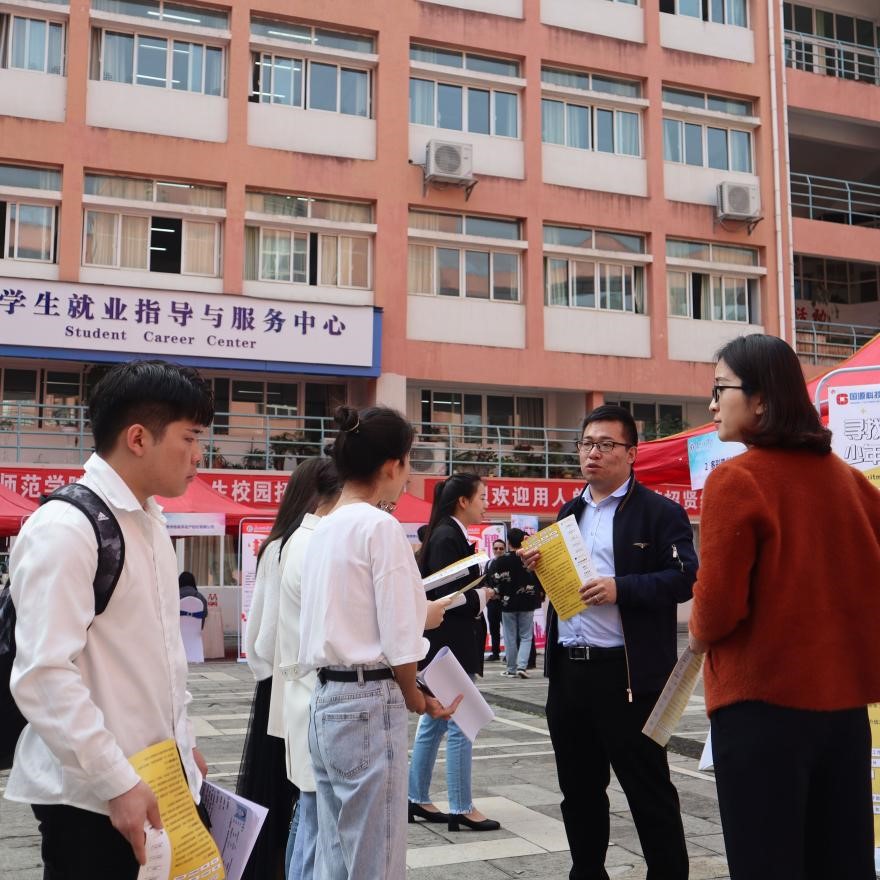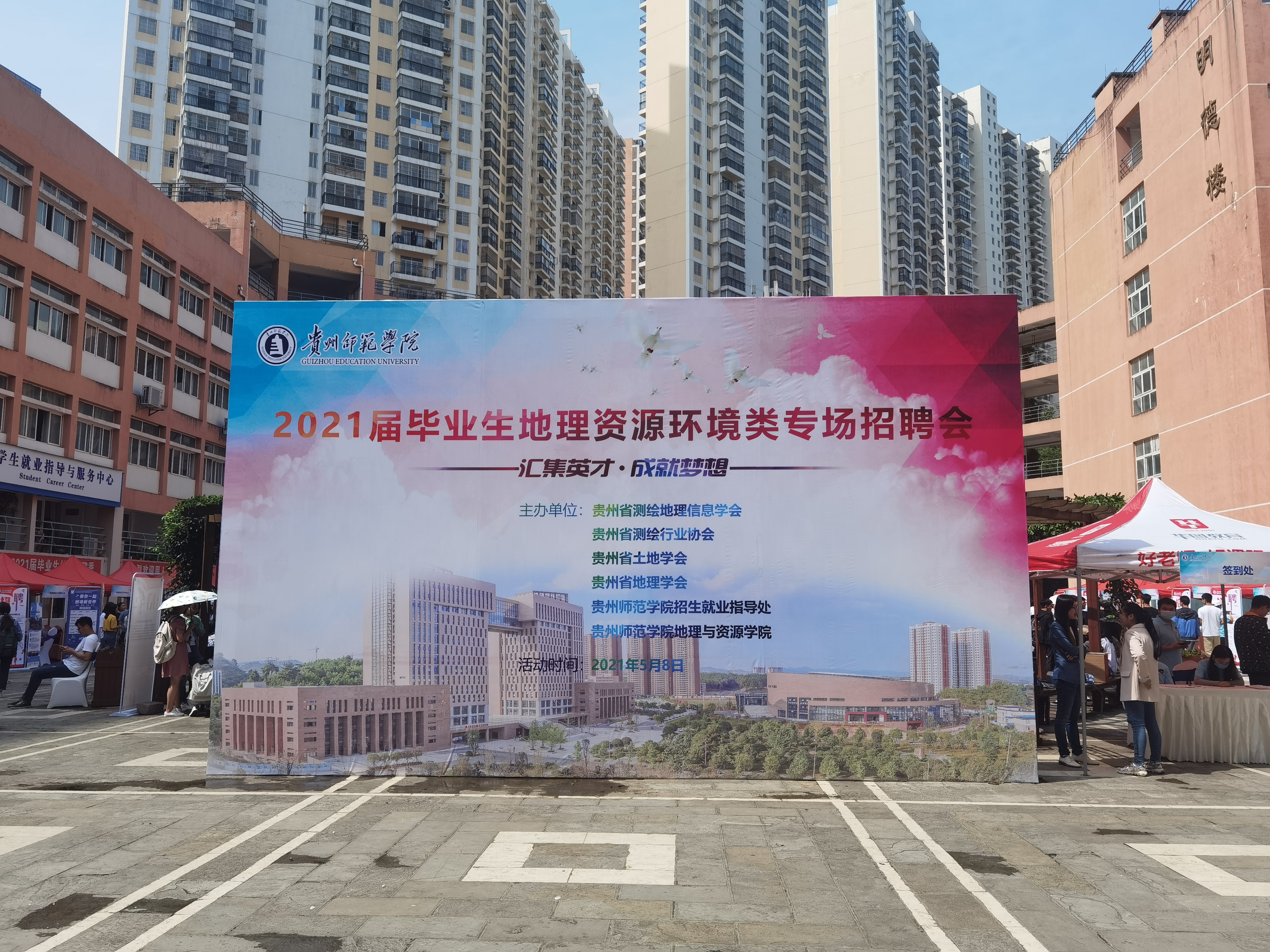 为落实党中央“稳就业”、“保就业”决策部署,促进2021届毕业生更充分、高质量就业,同时为用人单位与毕业生沟通洽谈提供广阔的双选平台,以贵州省测绘地理信息学会,贵州省测绘行业协会,贵州省土地学会、贵州省地理学会以及beat365英国官网网站为主办单位,在beat365英国官网网站招就处的支持指导下,于2021年5月8日在beat365英国官网网站文韬苑明理楼庭院(大学生就业指导中心门前)举办了2021届毕业生地理资源环境类专场招聘会。