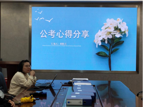 紧接着由四位通过今年公务员面试的应届毕业生肖天一、赵超超、范茜、杨胜兰结合自身经历依次从公考形式、公考流程、考试内容、岗位选择、备考资料选择、行测和申论复习方法、面试注意事项等方面进行分享交流。会上学长学姐们知无不言言无不尽,为前来学习经验的学弟学妹们提供了一场详尽的交流分享风暴,每一位分享了自己的经验和心得后都迎来了热烈的掌声。经验交流结束后,四位学长学姐耐心解答学弟学妹提出的问题,给他们带来了很大的启发,对他们的公务员备考起到积极的帮助作用。