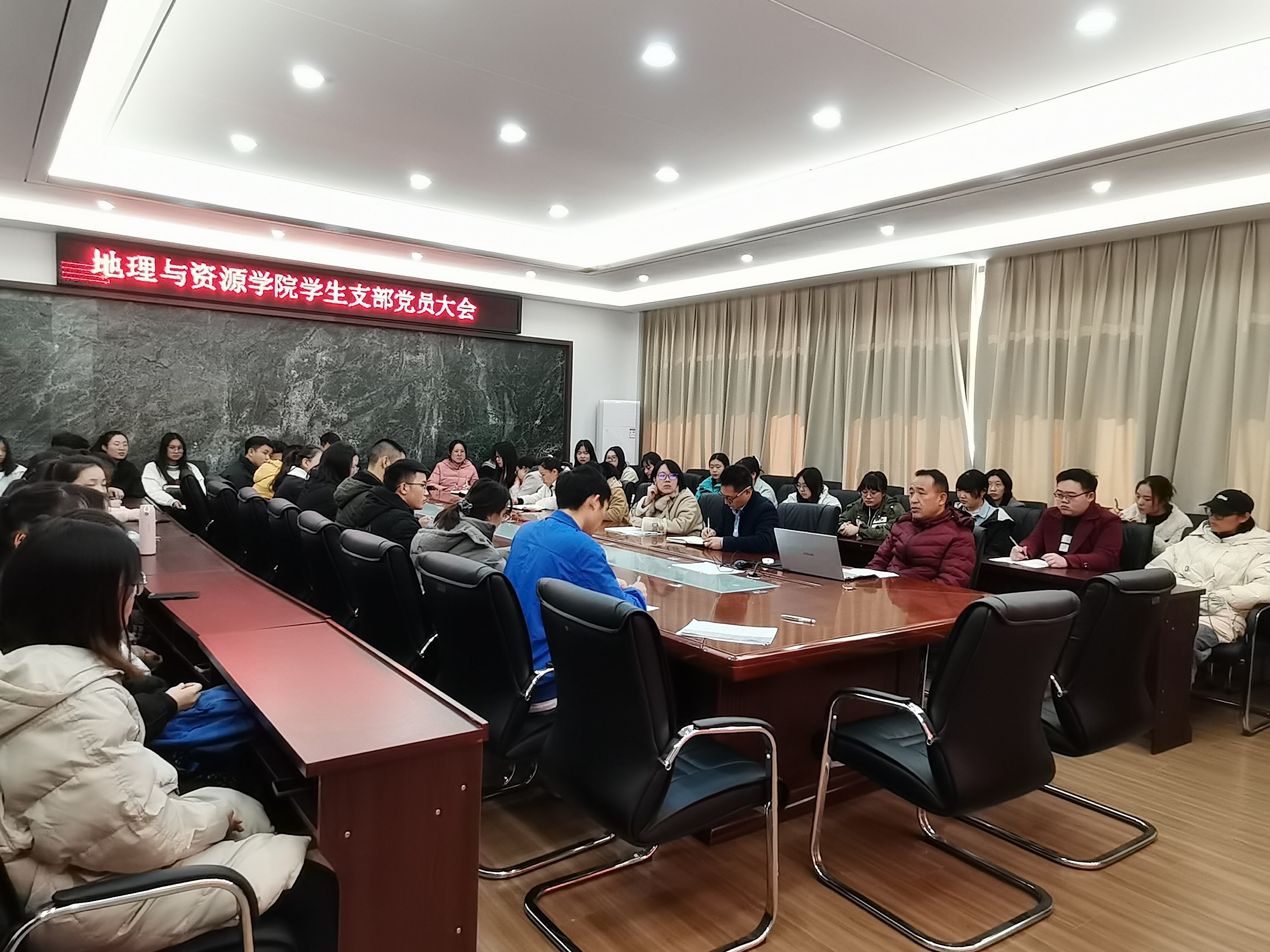 吴亚平介绍了两年来学生党员发展的基本情况,并强调党员要把理想信念内化于心,外化于行,即要把自身理想和一生不变的信仰内化于心,把共产党员的责任、担当、奉献和自我约束外化于行,对自己严格要求,做一名合格的党员。吴亚平接着宣布,随着beat365英国官网网站学生党员队伍的不断壮大,学校党委已经批准,通过这次全校性的支部改选,将beat365英国官网网站学生党支部析分为地理科学类学生党支部和资源环境类学生党支部。吴亚平要求,两个支部成立后,要进一步做好支部的组织建设,思想建设,政治建设,继续做好学生党员发展工作。吴亚平指出,两个支部党员要积极参与支部工作,开创学生党建工作的新局面。同时,两个学生支部工作要紧密协作,共同推进学生党建工作,把支部建设成坚强可靠的战斗堡垒。吴亚平还特别强调,学生党员要发挥带头作用,端正学风,在日常学习生活及党员活动参与过程中不断得到提升和成长,成为一名真正的合格的共产党员。罗绪强祝贺学院党员队伍不断壮大,不断成长,并表示两个学生支部工作目标性强,既突出学科专业特点,又便于开展工作突出学科优势,党员是共产党的一员,学生党员要把成绩搞好,本领搞强,严格要求约束自己,明确自己的义务,发挥标杆作用,为人民谋幸福,为民族谋复兴,成为新时代能担大任的国之栋梁。