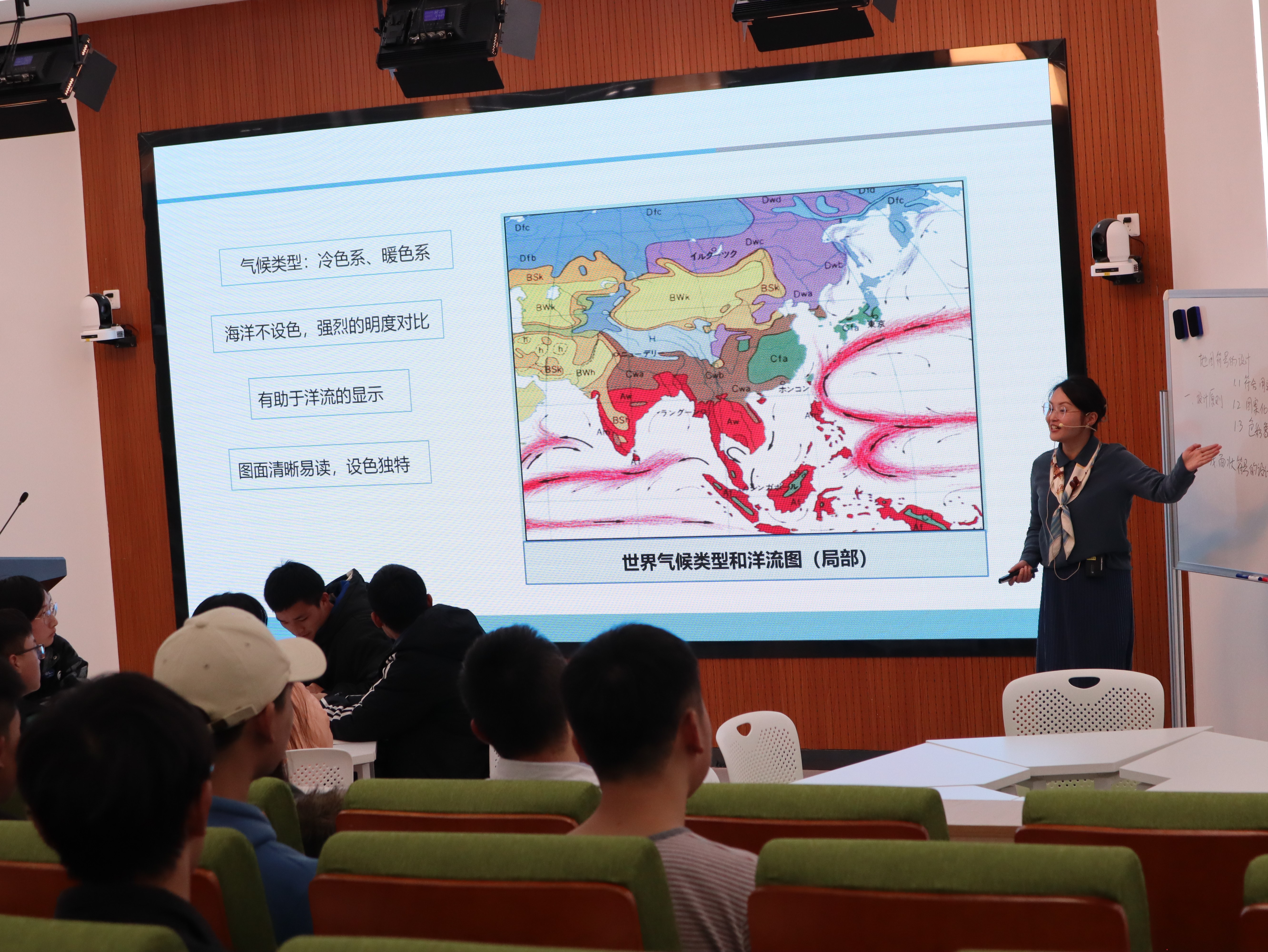 本次公开课,白老师主讲《地图学》中地图符号的设计,从空间思维——创新之源,地理素养——认知之源,智慧计算——能力之源,美学教育——活力之源四个角度出发,通过贵州连续多年被评为“全球最值得前往的旅游地”、大学生“诗词地图”、由修文地震引入全国地震分布图、金奖地图等案例,结合课堂互动、课堂实操、课后思考等环节的安排,润物细无声般将地图的设计思想和具体设计过程融入其中,并落脚到科学实践的基础和依据——国家标准上。课程以学生为主导,授课生动活泼,又有深度,既激发了学生兴趣,又让学生由浅入深收获了很多。在讲学过程中,不断加强学生的参与感,学生积极参与,积极回答白老师提出的问题,整个教学内容清晰,教学目标明确,取得了较好的教学效果。