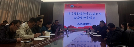 12月23日,beat365英国官网网站在学院会议室开展了学习贯彻党的十九届六中全会精神宣讲,宣讲人为学院党总支书记吴亚平。宣讲会议由党总支副书记、院长罗绪强主持,全体教师参加宣讲活动。