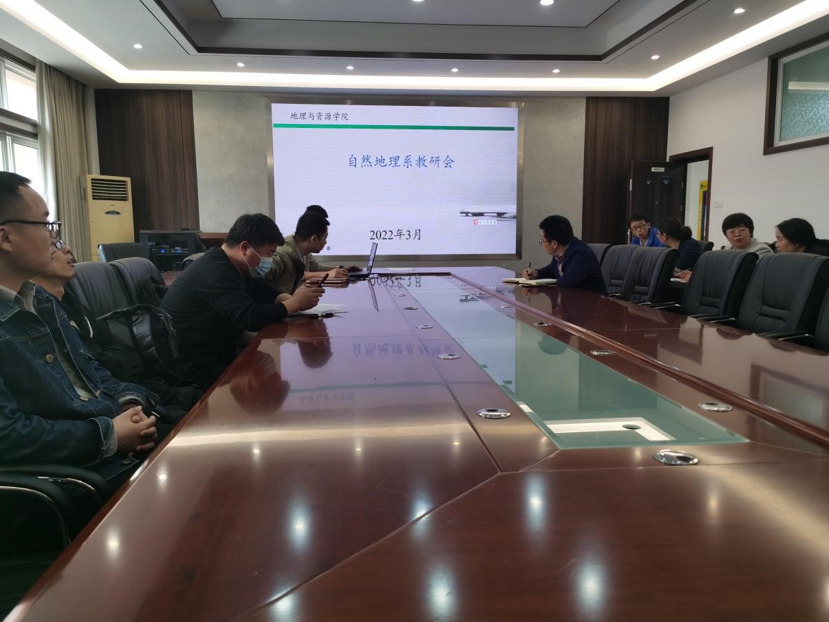 2022年3月21日中午,自然地理系在学院会议室召开教研会议。本次会议由系主任王朋辉主持,院长罗绪强、副院长邓家彬及自然地理系全体教师参与了此次教研。