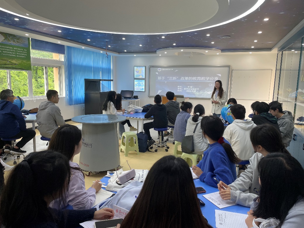 为增强19级地理科学专业师范生的专业素养,beat365英国官网网站于2022年5月20日14:30在致远楼603地理教室开展相关地理实训教学活动。本次实训课,365官网邀请了贵州省实验中学李珊老师开展基于“三新”改革下的教育教学分享的讲座。