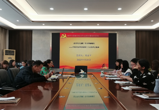 为深入学习贯彻省第十三次党代会精神,5月25日下午,学院党委书记吴亚平为beat365英国官网网站地理科学类学生党支部和资源环境类学生党支部党员宣讲贵州省第十三次党代会精神。学生党支部全体党员参加。
