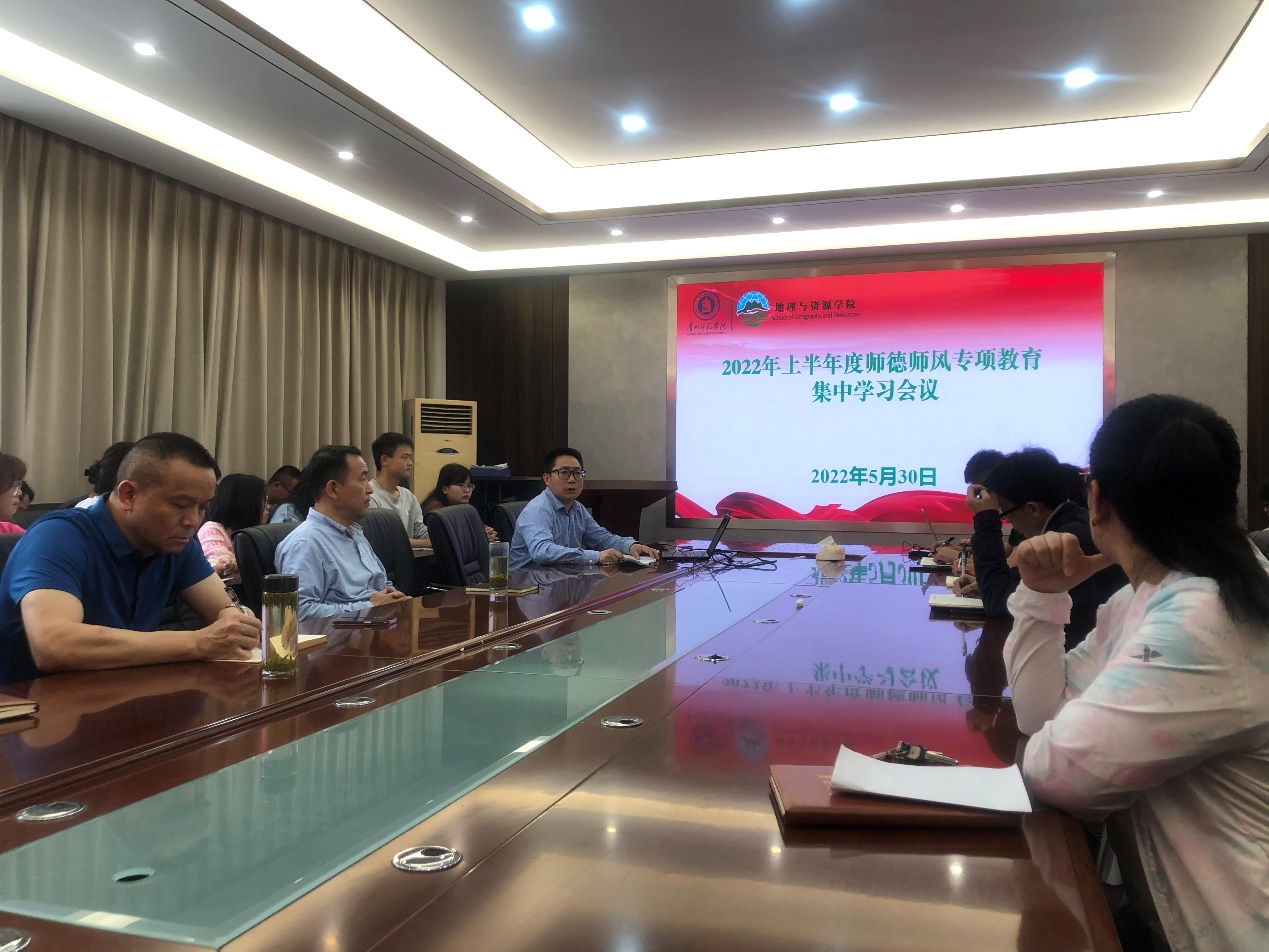 为落实教育部“加强高校师德师风建设”指示精神,教育部地理信息科学专业虚拟教研室开展了青年教师“师德师风”教育活动。beat365英国官网网站作为教育部地理信息科学专业虚拟教研室成员单位,于2022年5月30日组织全院教师和地理科学专业学生代表参加了师德师风专项教育集中学习会议。会议由学院院长兼党委副书记罗绪强主持。