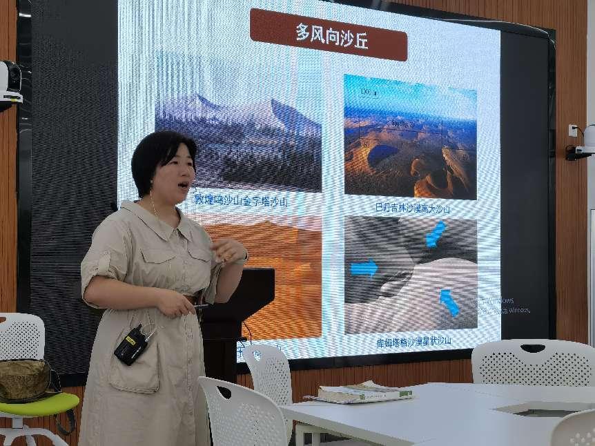 6月16日上午10点半,杨转玲老师主讲《自然地理学》中风沙地貌各类形态辨别以及形成过程及因素。通过展示干旱荒漠区分布图以及中国年降水量等值线图来带领学生一起分析图表,锻炼了学生的读图能力,并使学生们活跃地加入到课堂活动当中来。之后,杨老师讲到风沙作用,为我们介绍了两位风沙科学家,培养了学生们的科学素养,紧随其后,杨老师向学生们展示了风棱石、石窝、风蚀蘑菇、风蚀柱、风蚀残丘、等图片,利用直观教学法使学生们更加直观地感受到风蚀地貌形态,而不是知识点仅存于书本层面。杨教师教学思路清晰,对课程标准把握深刻到位,运用教材合理有度。新课标对传统教学方式是一种极大的颠覆,过去是讲究教为主导,学为主体。现在老师更像一名策划,看上去是解放了教师,而真正的是发动学生,让他们自主、合作、探究学习;让他们学会读书、勤于思考、善于质疑、敢于发言。其中很多工作都还需要老师去引导、点拨。即对老师的要求更高了。在对课标、教材深刻理解的同时,还要求老师必须具备宽广的知识面。在学生面前展示的是老师渊博的知识面、敏锐的洞察力、教强的课堂驾驭能力。在课堂上,老师充分尊重学生学习的主体地位,把学习的机会留给学生,相信学生,学生的能力得到了很好的培养。作为教师真正的充当起了组织者的角色,学生在这样的教学活动中,对知识掌握得更加的扎实、灵活,充分按照了本学科的特点。