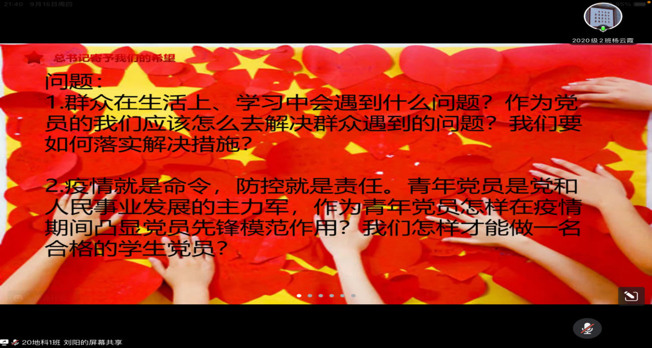 2022年9月18日,beat365英国官网网站地理科学类学生党支部全体成员在线上开展了“喜迎二十大,我为群众干实事”——beat365英国官网网站地理科学类学生党支部党日活动。