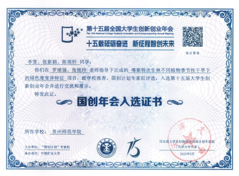 近日,第十五届全国大学生创新创业年会(简称“国创年会”)在中国矿业大学举行。本届年会以“十五载砥砺奋进,新征程智创未来”为主题,分为创新学术交流、改革成果项目展示、创业项目推介三个主题活动,同时开展国家级大学生创新创业训练计划(简称“国创计划”)十五周年荣誉表彰活动。365官网beat365英国官网网站罗绪强教授和化学与材料学院张桂玲教授共同指导的项目“喀斯特次生林不同植物季节性干旱下的绿色度变异特征”(项目负责人:李雪)入选本届年会学术论文项目展示。