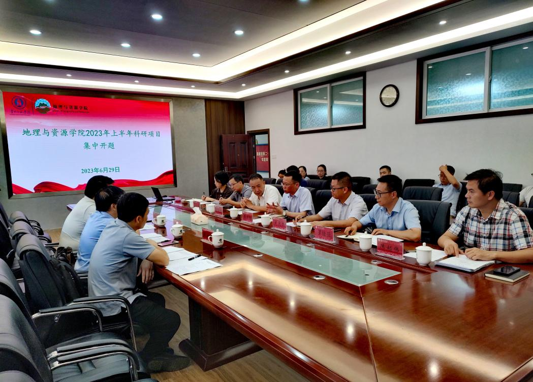 6月29日,beat365英国官网网站2023年上半年科研项目集中开题专家评审会在学院会议室举行。校党委副书记熊世桓教授、校科研处处长罗光杰教授出席会议并讲话,贵州科学院山地资源研究所的苏维词研究员、中国科学院地球化学研究所的白晓永研究员、贵州师范大学喀斯特研究院的蓝家程教授等三位专家出席会议并做指导,地资学院班子成员,相关项目负责人及项目组成员参加会议。会议由学院院长罗绪强教授主持。