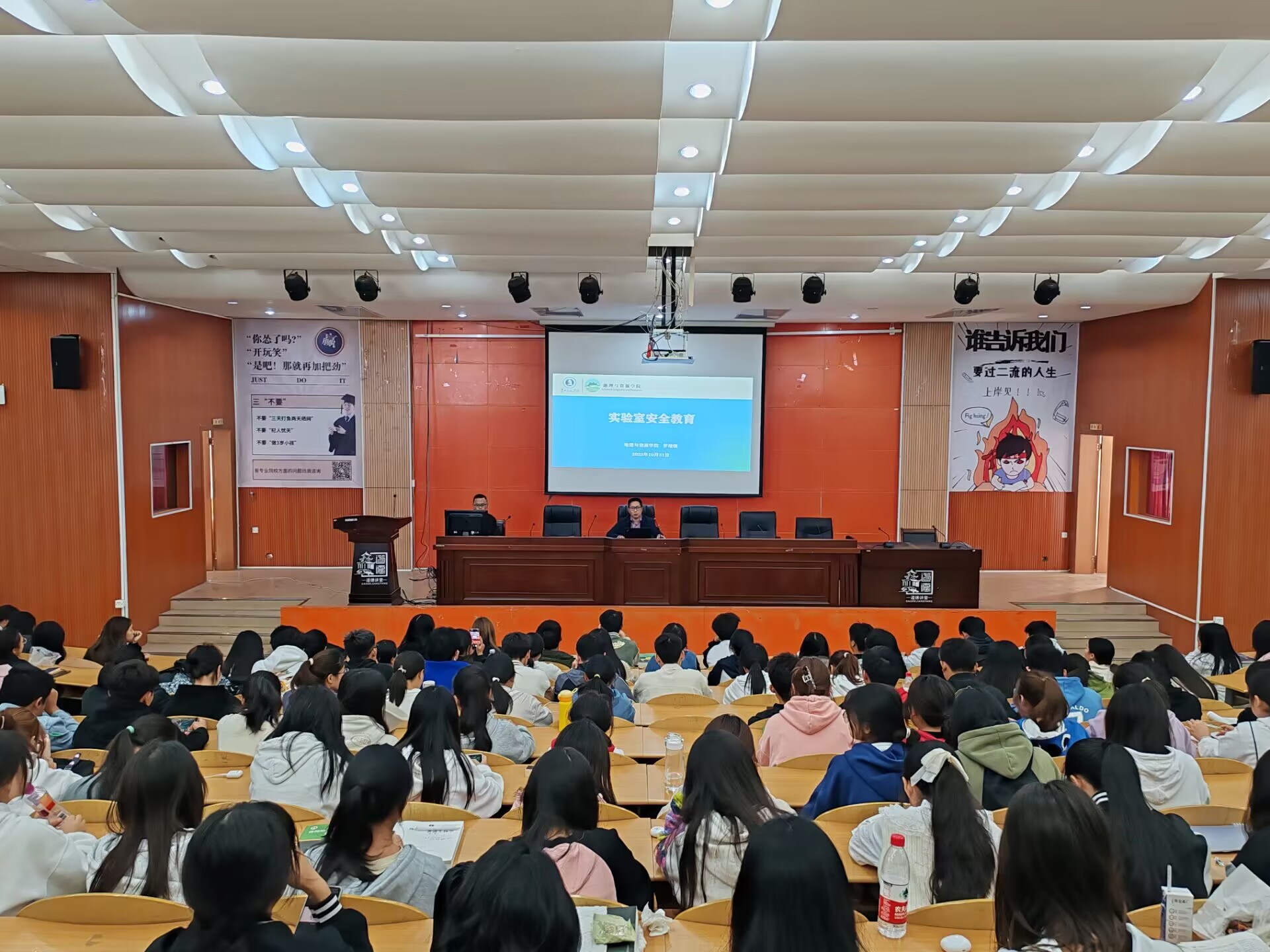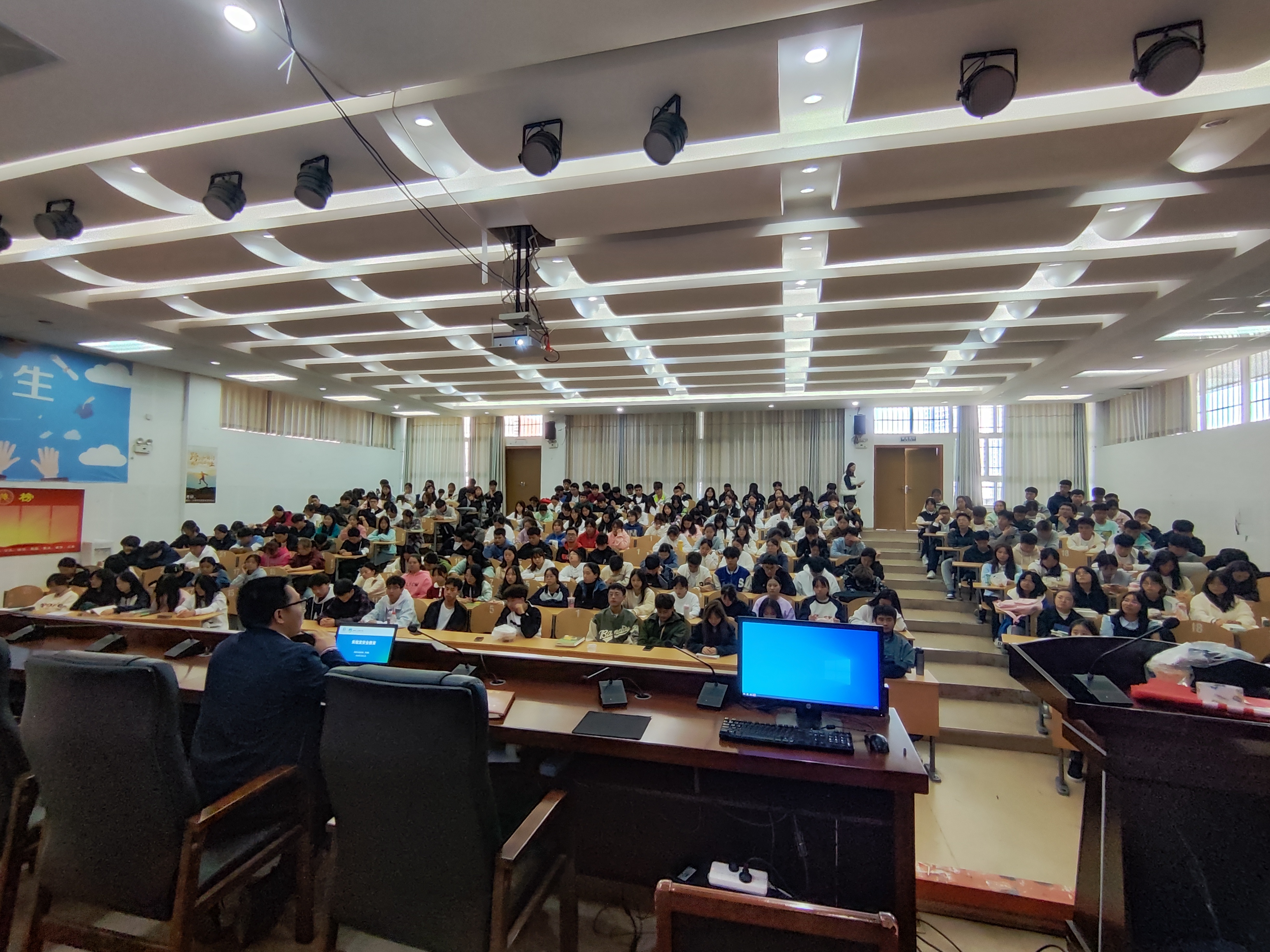 为进一步强化学生安全意识和自我保护能力,规范实验教学运行和保障教学秩序,10月31日,beat365英国官网网站在明义楼三楼学术讲堂开展了专门针对2023级新生实验室安全方面的教育培训会,学院2023级全体学生300余人参加了培训会,实验室主任郭金梅老师参加了培训会讲座。讲座由实验室安全责任人况江老师主持。