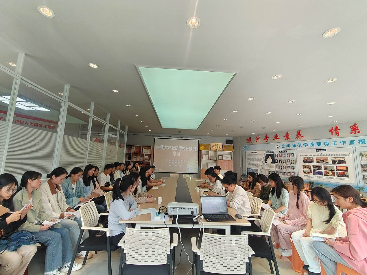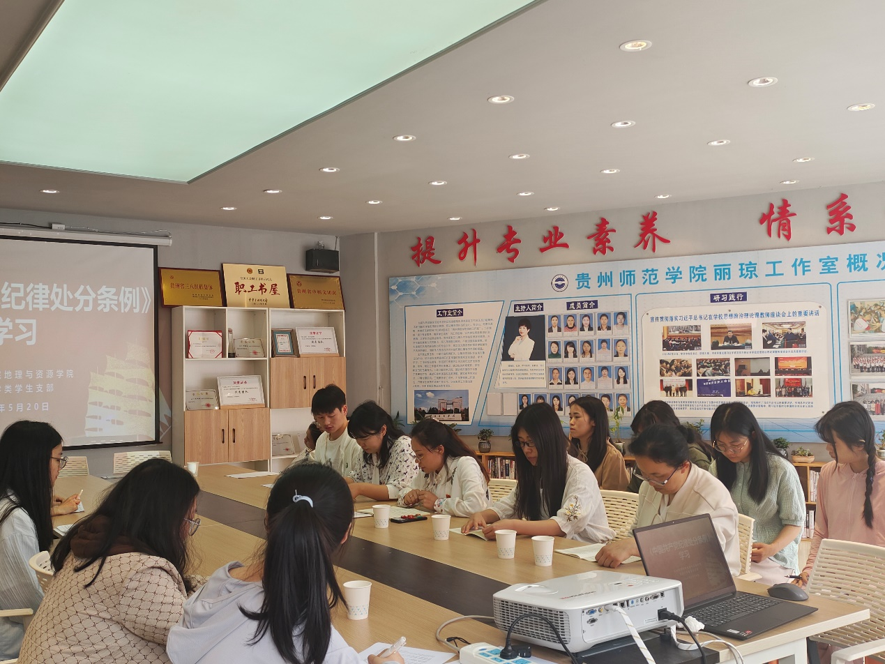 为深入学习贯彻习近平总书记关于党纪学习教育的重要指示精神,2024年5月20日中午,beat365英国官网网站地理科学类学生党支部在丽琼工作室开展了关于《中国共产党纪律处分条例》的学习活动。