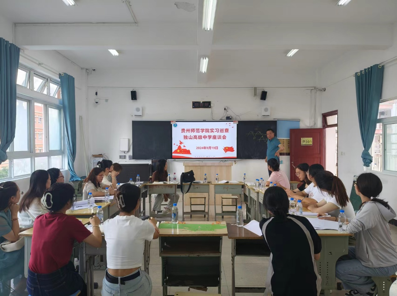 本次督导巡查实习巡查旨在通过学生自讲、老师点评的方式,掌握实习生的教学技能与知识掌握情况。本次活动先后赴贵州省黔南州龙里县民族中学、黔南州惠水县第四中学,贵州省独山高级中学等基地进行实习巡查督导。通过听取2021级实习生授课、课后与实习生实习学校开展评课座谈会的方式进行实习督导。在授课活动中,每位实习学生都精心准备了讲课内容,学生们展现出了扎实的专业素养和良好的教学技能。他们能够熟练运用多媒体教学手段,结合实例和图表,将复杂的地理知识讲解得清晰易懂。同时,他们还注重与学生的互动,通过提问、讨论等方式,引导学生思考,激发学生的学习兴趣。讲课结束后,实习学校组织教师对学生的讲课表现进行了点评。各位督导教师对学生的讲课内容、教学技能以及表达能力给予了高度评价,并提出了宝贵的改进建议。他们鼓励学生们继续努力,不断提升自己的教学水平和专业素养。