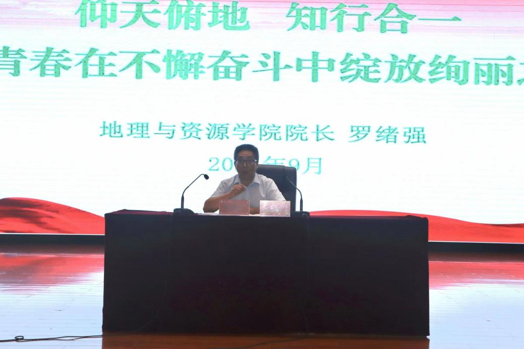 罗绪强以《“仰天俯地 知行合一”,让青春在不懈奋斗中绽放绚丽之花》为题,结合当今时代背景,详细分析了学院各专业的发展前景,为全体新生讲述各个专业的育人计划和培养目标。他强调,在新时代西部大开发创新路的背景下,我们要着力建设高水平人才,让学生们能够明确自己的目标,向着正确的道路前进。最后,他希望“仰天俯地,知行合一”的院训能够激励每一位新同学敢于在新时代中创新,做立德树人的新青年,树立远大目标,走好奋进之路。