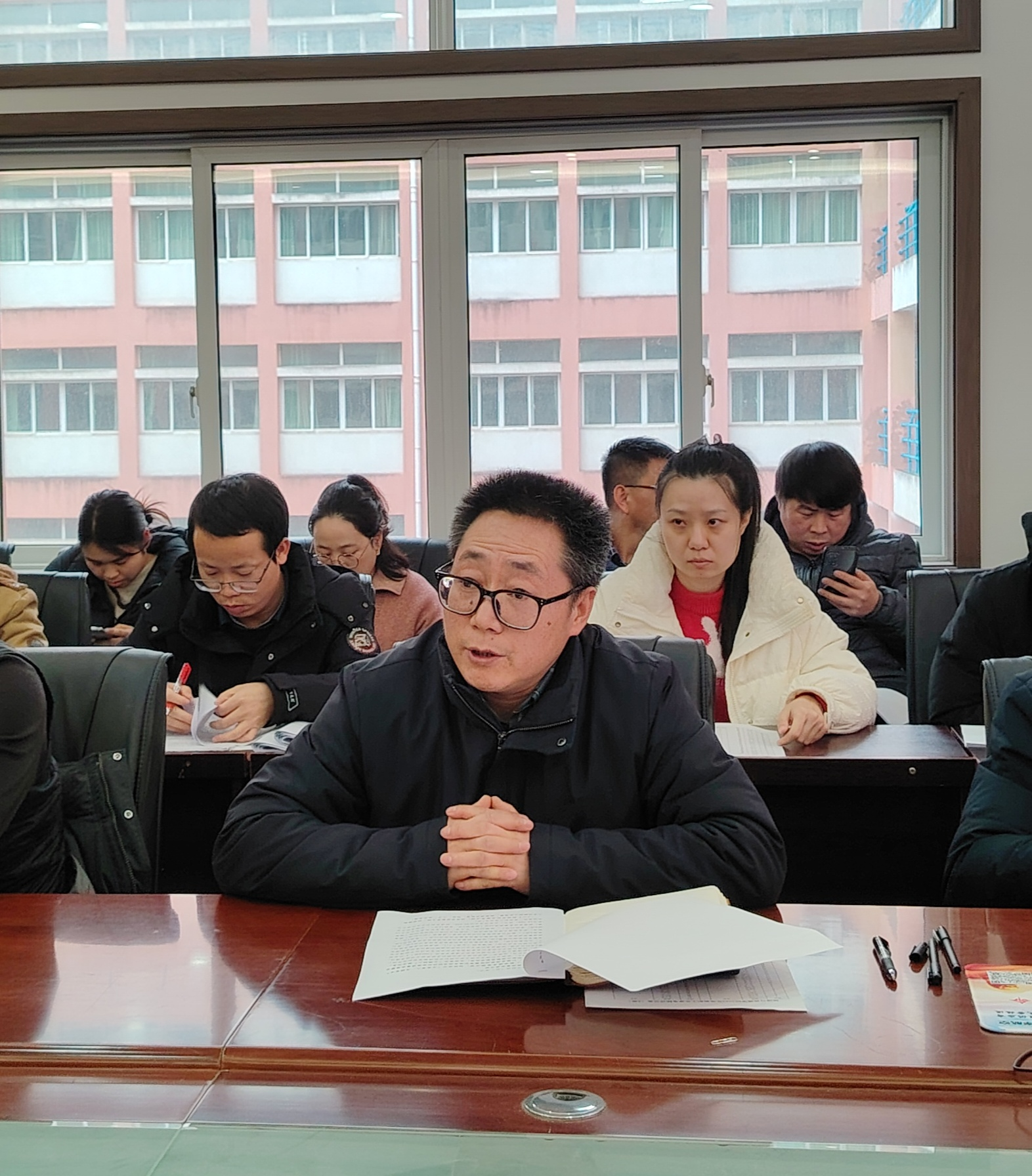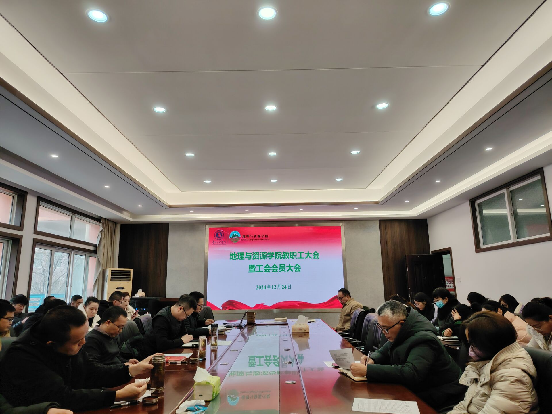 12月24日,beat365英国官网网站教职工大会暨工会会员大会在宁静楼323会议室召开。学院全体教职工出席本次会议,会议由学院院长罗绪强主持。