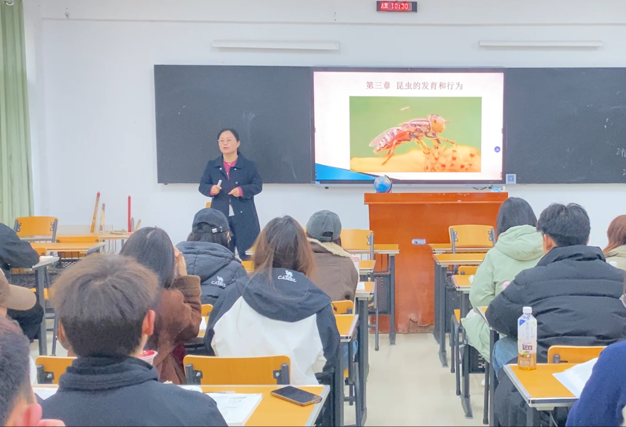 郑延丽教授在《植物保护学》课程教学中创新性构建教学路径,以鳞翅目昆虫完全变态发育过程为切入点,系统解析卵、幼虫、蛹、成虫各发育阶段的生物特性,通过生命形态演变与生态环境的耦合关系阐释,引导学生从微观生命现象透视宏观生态系统平衡机制,深化生物多样性保护认知。赵志猛老师在《自然资源学》课程中,立足资源科学利用与乡村振兴战略的辩证关系,将可持续发展理念具象化为可感知的教学案例,实现理论知识与现实问题的有机衔接。叶春老师主讲的《区域分析方》课程,以科学方法论为指导,通过结构化拆解数据分析流程并辅以实证案例,系统提升学生专业研究能力。王朋辉老师在《岩溶学及其应用》教学中,深度融合贵州省典型岩溶地貌特征与学科前沿成果,有效贯通理论教学与科研实践逻辑。宋长顺老师通过《土壤地理学》课程,建立土壤发生学与生态保护理论的认知桥梁,在解析土壤理化性质过程中渗透资源永续利用理念。学院教学督导组联合各教研室主任组成专项评课团队,系统性参与教学观摩与评议工作,针对课程设计、教学实施等维度提出建设性改进建议。