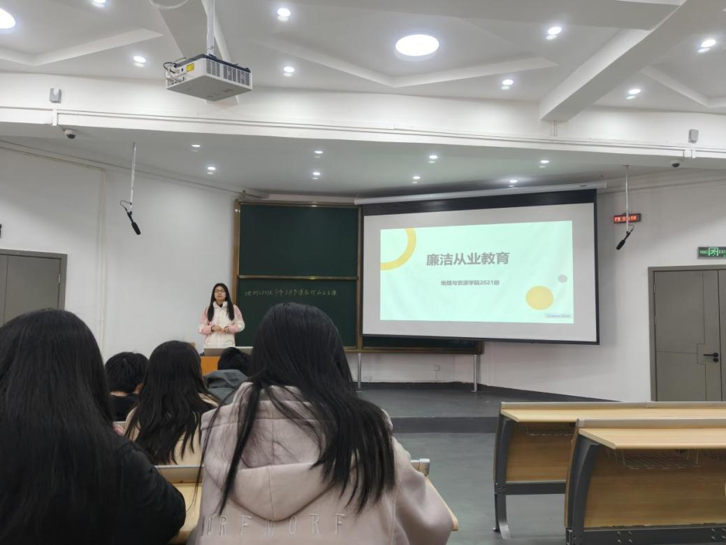 班会中,刘丹丹结合案例讲解,深入讲解了廉洁从业的内涵与意义,引导毕业生贯彻中央八项规定精神,叮嘱毕业生党员以及全体毕业生要树立廉洁之心、行廉洁之事、做廉洁之人。同学们在主题班会中纷纷表示会筑牢思想防线,不忘初心,在求职、就业过程中,守本住心,系好走向社会的“第一粒扣子”。