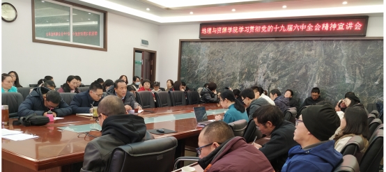 12月23日,beat365英国官网网站在学院会议室开展了学习贯彻党的十九届六中全会精神宣讲,宣讲人为学院党总支书记吴亚平。宣讲会议由党总支副书记、院长罗绪强主持,全体教师参加宣讲活动。