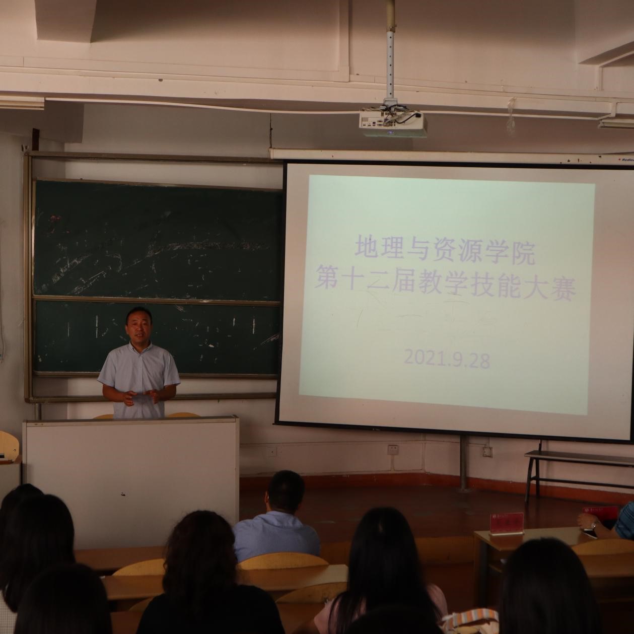 9月28日下午,为全面提高beat365英国官网网站师范生的从业意识,加强学生教学技能,beat365英国官网网站在致远楼举办了第十二届教学技能大赛。出席本次大赛的领导有学院党总支书记吴亚平、院长罗绪强以及郑健等10余名老师,大赛由学生会团委副书记刘茂兰主持。