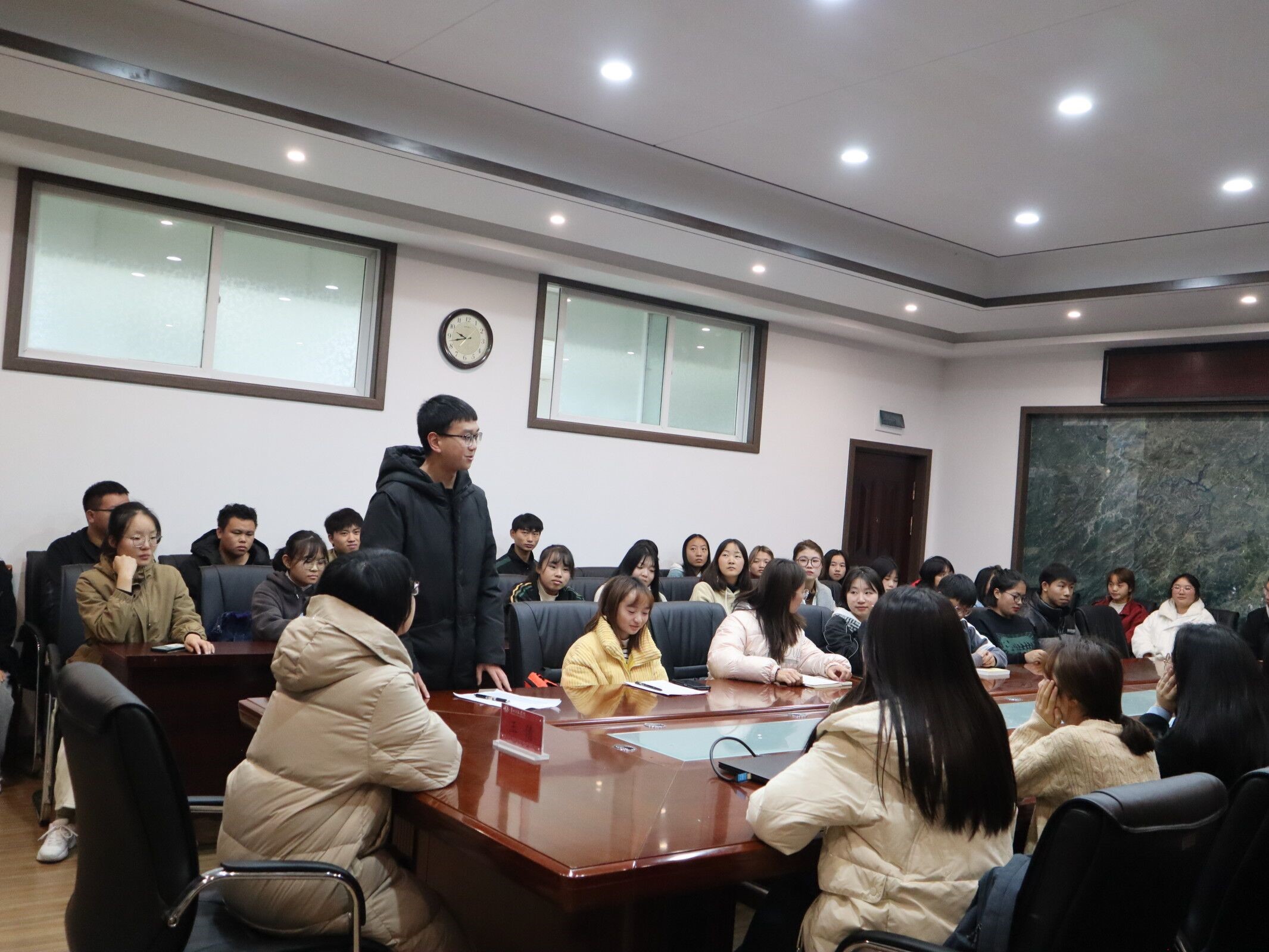 2021年11月17日中午12:30,为促进学生会新成员相互了解,让学生会团体更加团结,beat365英国官网网站第四届团委学生会集体大会在宁静楼325召开。