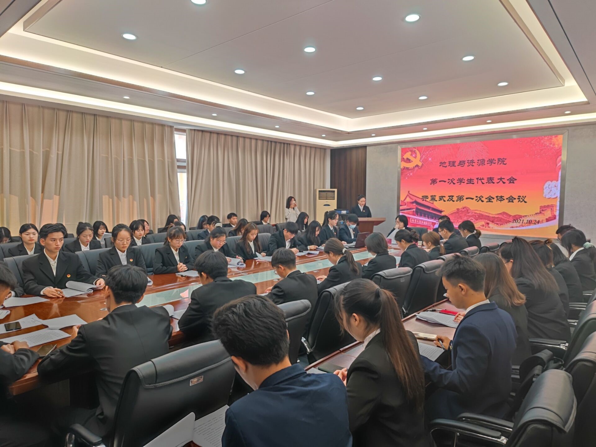 10月24日上午10点至10点30分,在宁静楼325召开了由王倩主持的预备会议。各学生正式代表听取报告人陈凤报告大会筹备工作报告(草案),通过了大会议程,代表资格审查情况(草案)等报告。由大会主席团通过各分团团长、副团长名单和大会议程。下午2点到4点30分,在宁静楼325召开了由王倩主持的正式会议,会议在奏唱国歌中拉开序幕。开幕式上,吴亚平对上届学生会的工作作出了肯定,也对下届学生会工作提出要求。淳淳话语、殷殷嘱托,鼓舞人心、催人奋进。紧接着,在六次分会议后,选举产生了第一届学生委员会和第一届学生会主席团成员。大会结束后,各正式代表通过学生会工作报告的决议,并全体奏唱校歌。至此,beat365英国官网网站第一次学生代表大会圆满落幕。